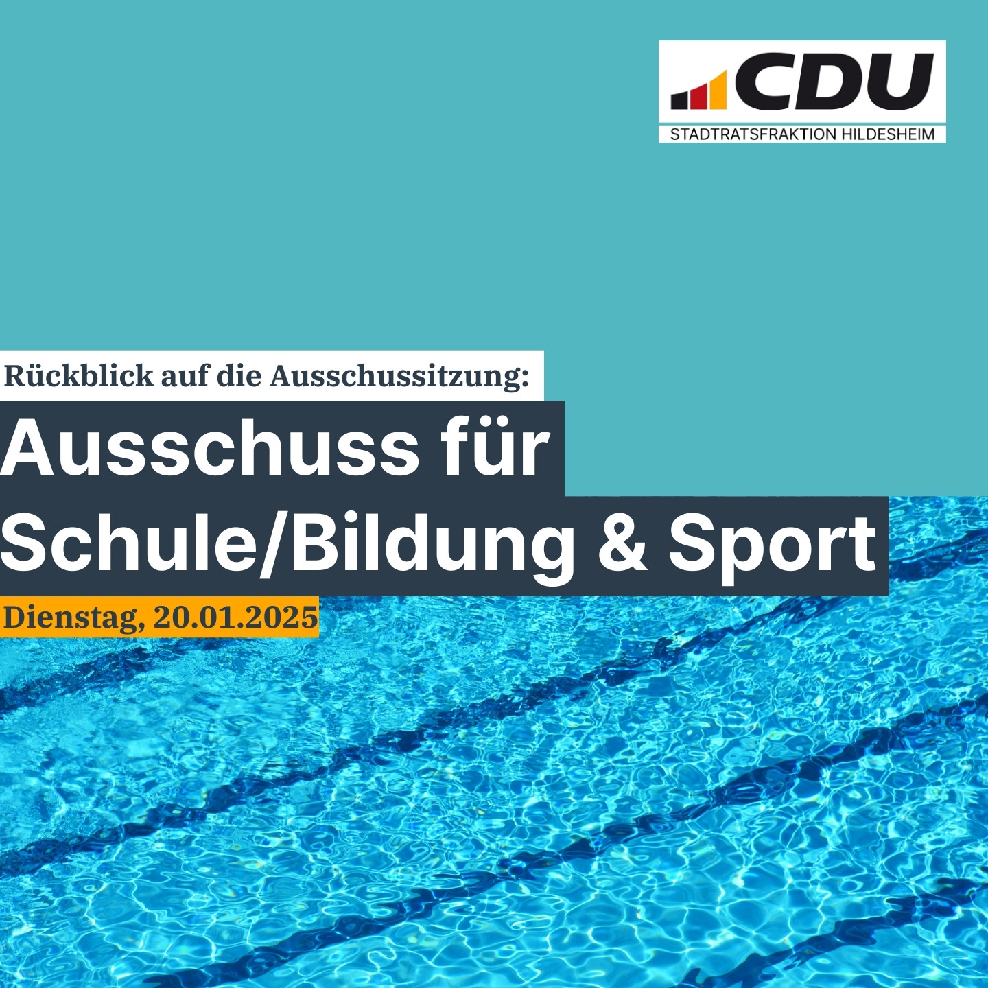 mehrAm Dienstag hat der Schulausschuss getagt und wir stehen ein für die Förderung der Schwimmflächen in unserer Stadt, um die Schwimmfähigkeit von Kindern und damit ihre Sicherheit im Wasser zu erhöhen! Weitere Beratungen im Ausschuss wurden u.a. über die Jowiese, das Vereinsgelände des SC Drispenstedt und die Thematik Oberschule geführt. #Hildesheim #Bildung #Sport #Schwimmen #Ehrenamt #Kommunalpolitik #CDU