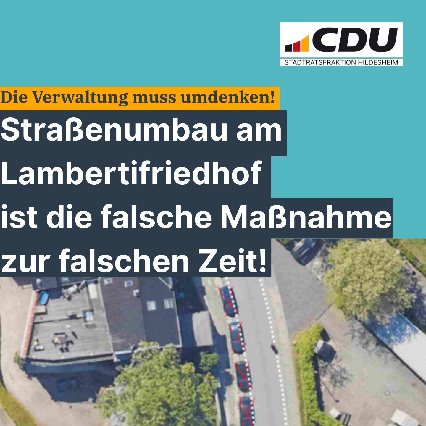 mehrDurch die geplanten Baumaßnahmen in der Von-Wintheim-Straße am Lambertifriedhof fallen fast die Hälfte der dortigen Parkplätze weg. Dies schadet Anwohnern, Gewerbetreibenden und den Besuchern des Friedhofes. Wir lehnen große Teile dieser Umbauten ab und fordern die Stadtverwaltung zum Umdenken auf! Die Fahrradverbindung ist aufgrund der schon bestehenden Fahrradstraße bereits jetzt eine der besten Routen unserer Stadt! #Hildesheim #Kommunalpolitik #Mobilität #Verkehr #CDU #Stadtrat