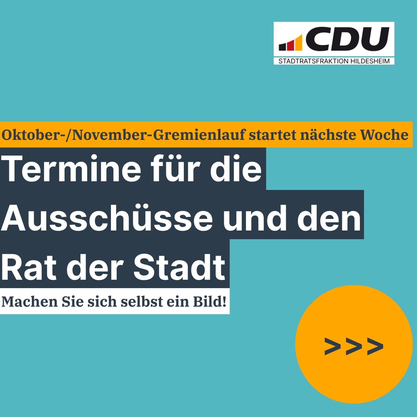 mehrIn der kommenden Woche startet der nächste Gremienlauf im Rathaus. Swipe für die genauen Termine! Wichtiger Hinweis dazu: In der zweiten Sitzung des Finanzausschusses am 12. November wird es um die Zukunft des Hildesheimer Hafens gehen. #Kommunalpolitik #HIldesheim #Ehrenamt #Engagement #CDU