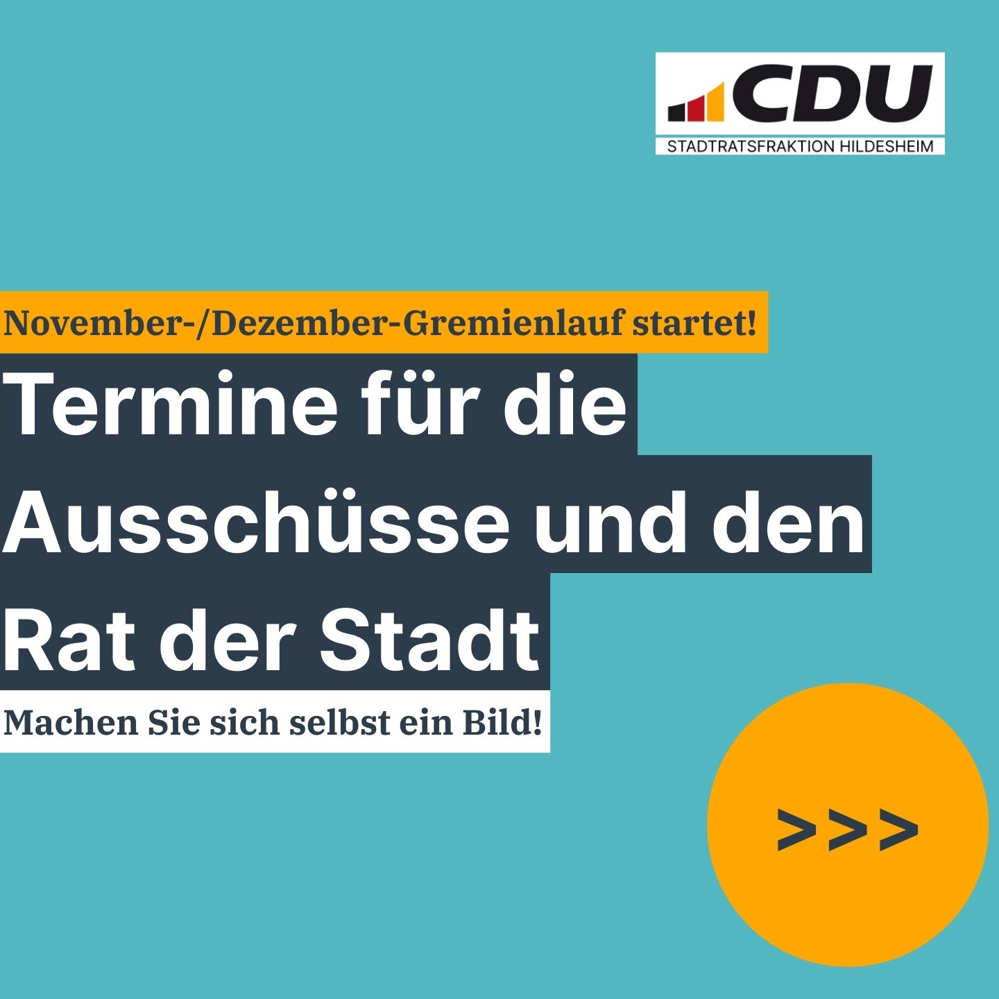 mehrStartschuss in den letzten Gremienlauf des Jahres! Höhepunkt ist die Sitzung des Stadtrates, in der voraussichtlich der Haushalt für die Jahre 2026/27 beschlossen wird. Alle Sitzungen sind öffentlich, also kommen Sie ins Rathaus und machen sich selbst ein Bild! #Hildesheim #Stadtrat #Kommunalpolitik #Ehrenamt #CDU